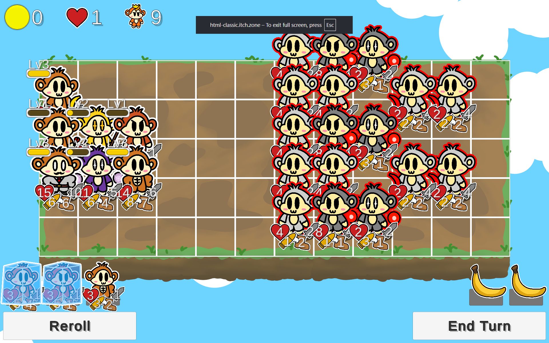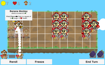 Left Click, pals can be dragged around on the board and can be hovered over for their abilities, left click on pals in shops to drag to the board to place. Everything costs 3 gold. (Except for rerolling which costs 1). All Player Pals can be upgraded 2 times in total, by merging the same pal with each other. All pals and fruits can be frozen, preventing them from getting rerolled.